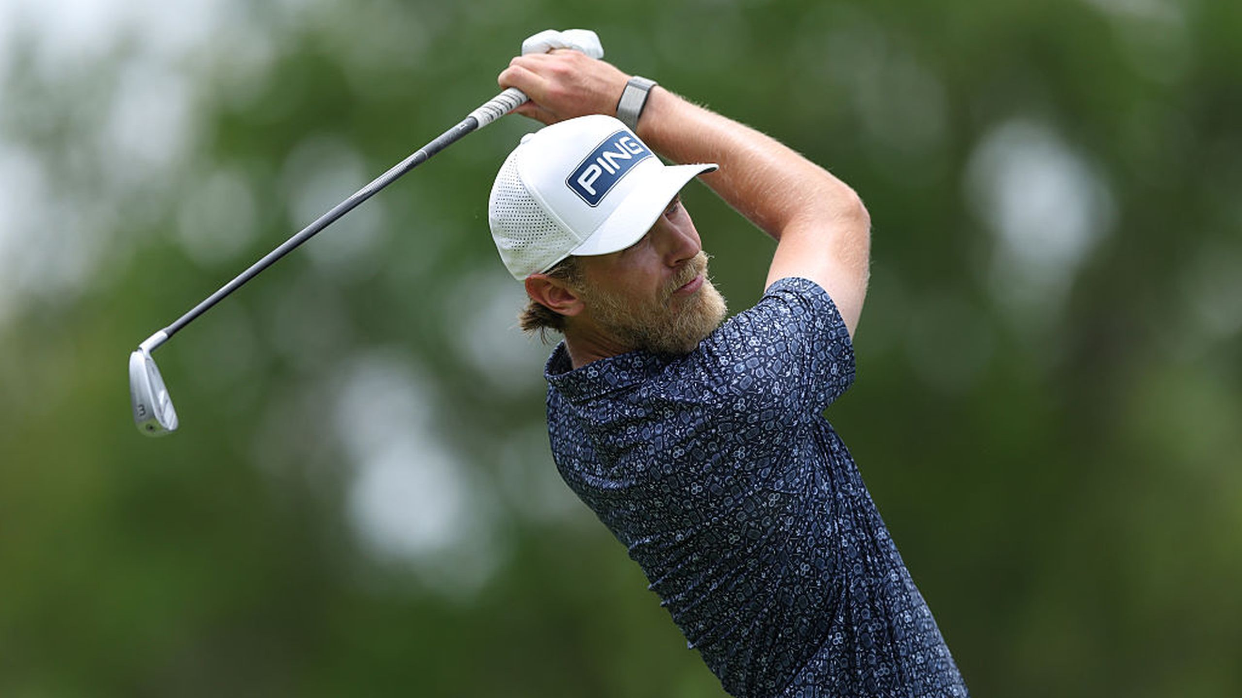 27-åringen slår seg ut til høyre i fairway. 188 yards inn!