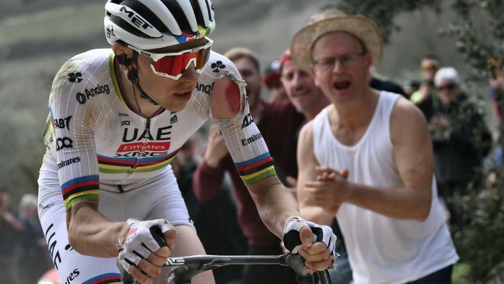 Her går det galt for Pogacar