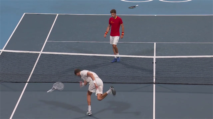 Furious Medvedev smashes racket after Olympic quarter-final defeat to Busta